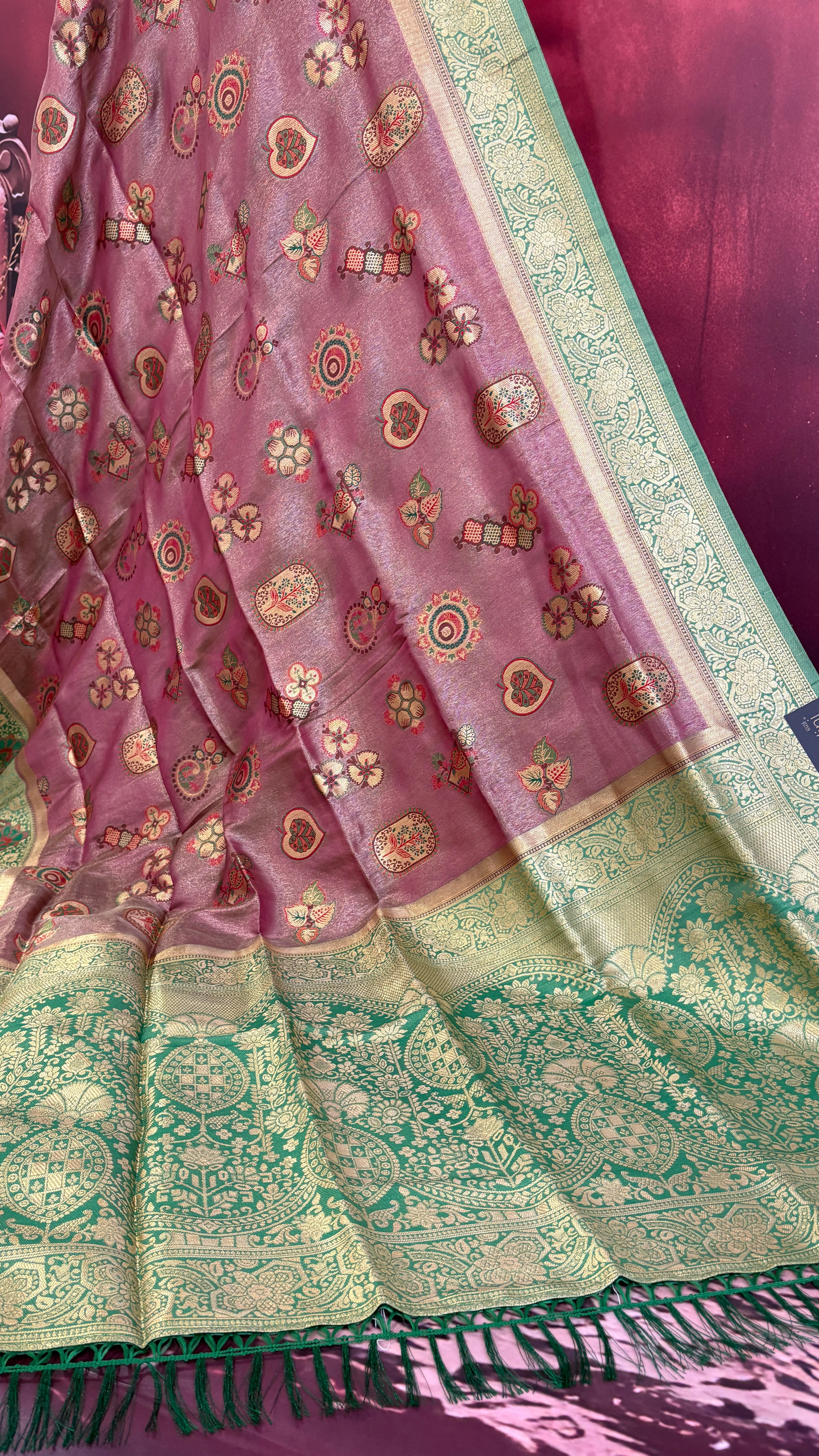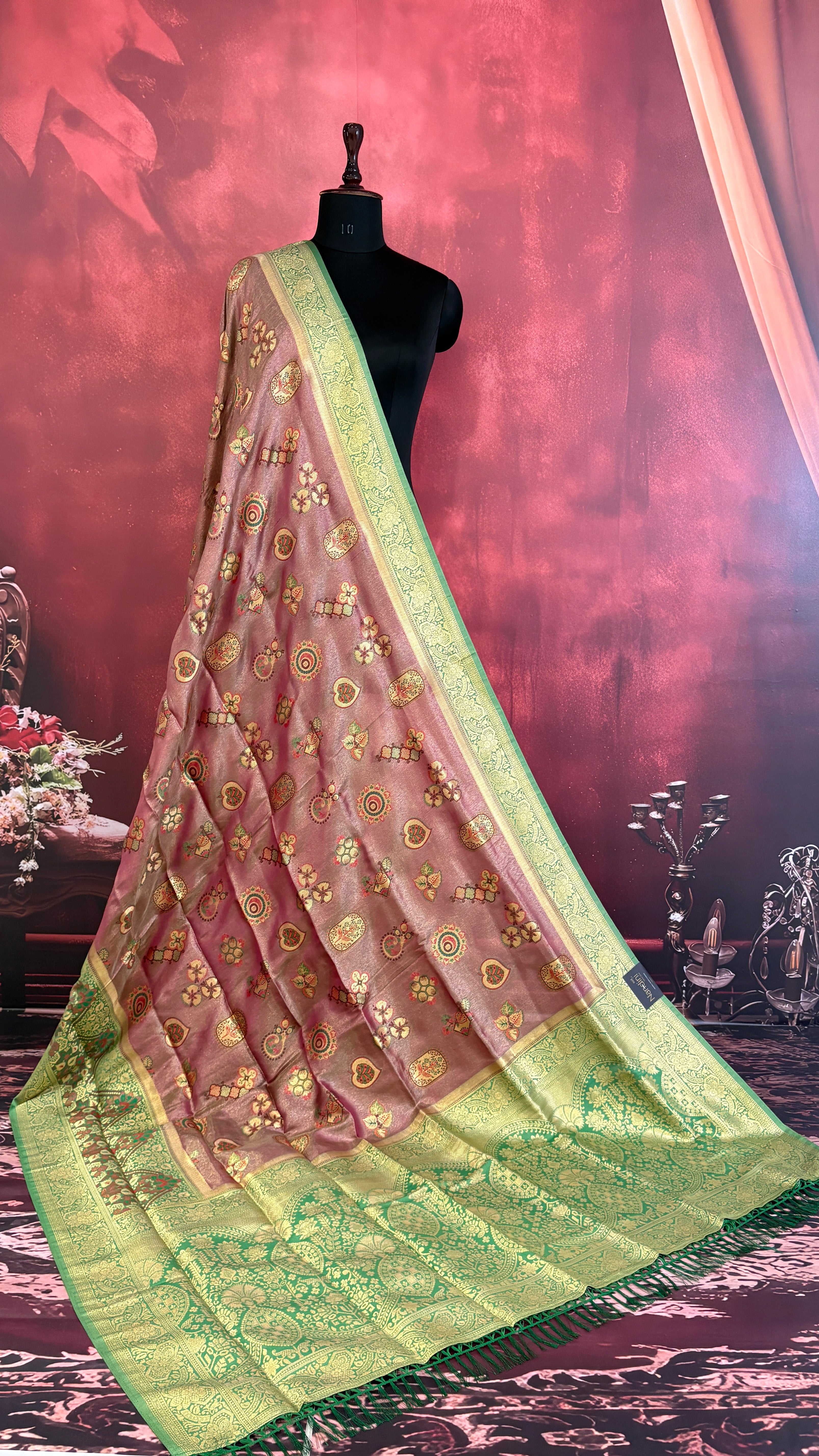 - Historically, tissue sarees were considered royal attire, worn by queens and brides for special occasions.
