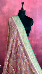 - Woven using premium art silk threads blended with metallic zari, creating a delicate shimmering tissue effect.
