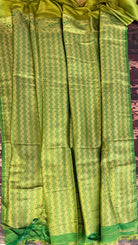- Woven using premium art silk threads blended with metallic zari, creating a delicate shimmering tissue effect.