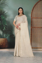 ivory-based tissue silk saree with handwork.