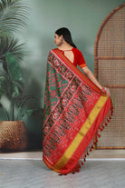 semi ikat patola with ikat design, navatna green