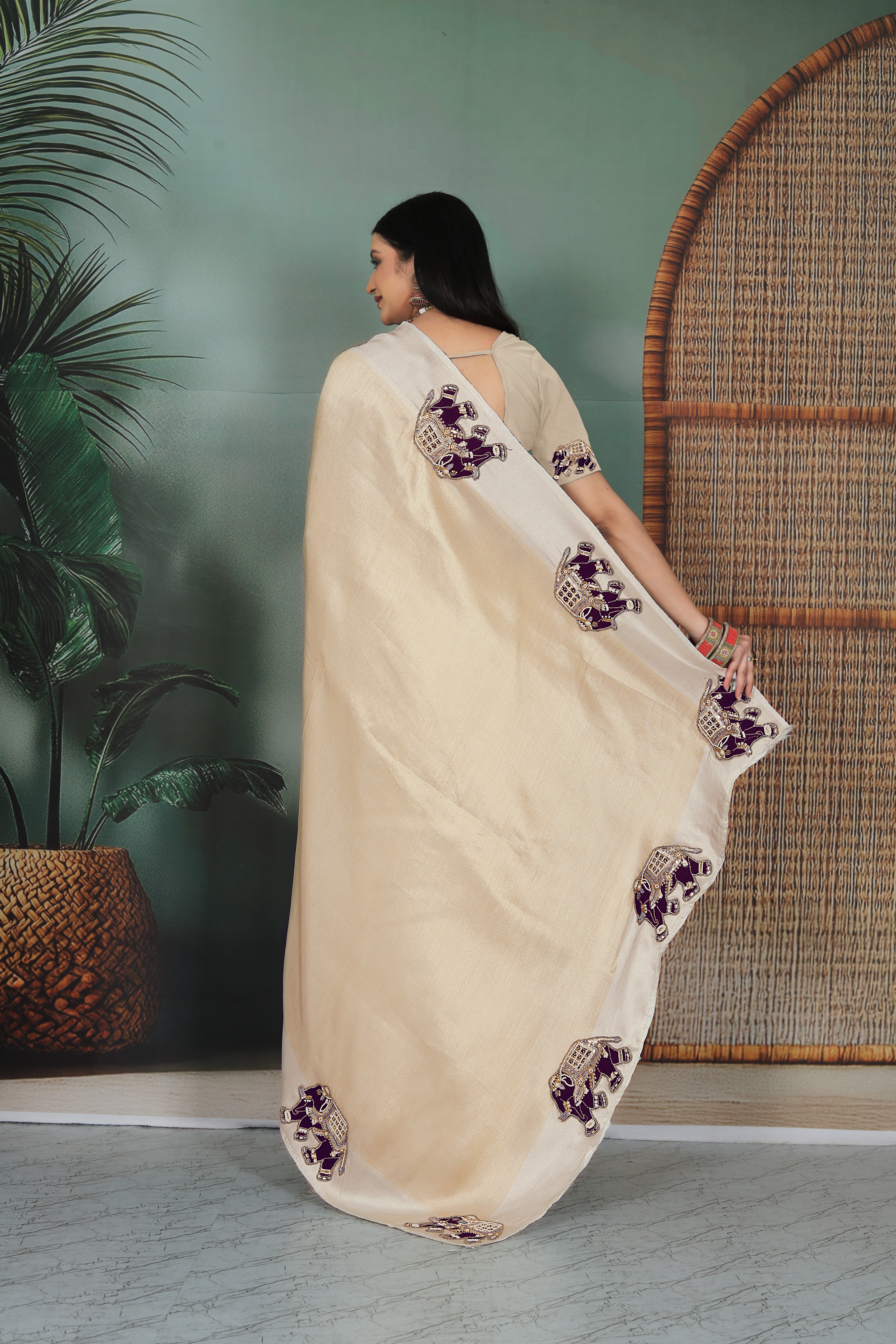 ivory color with elephant edging with moti handwork