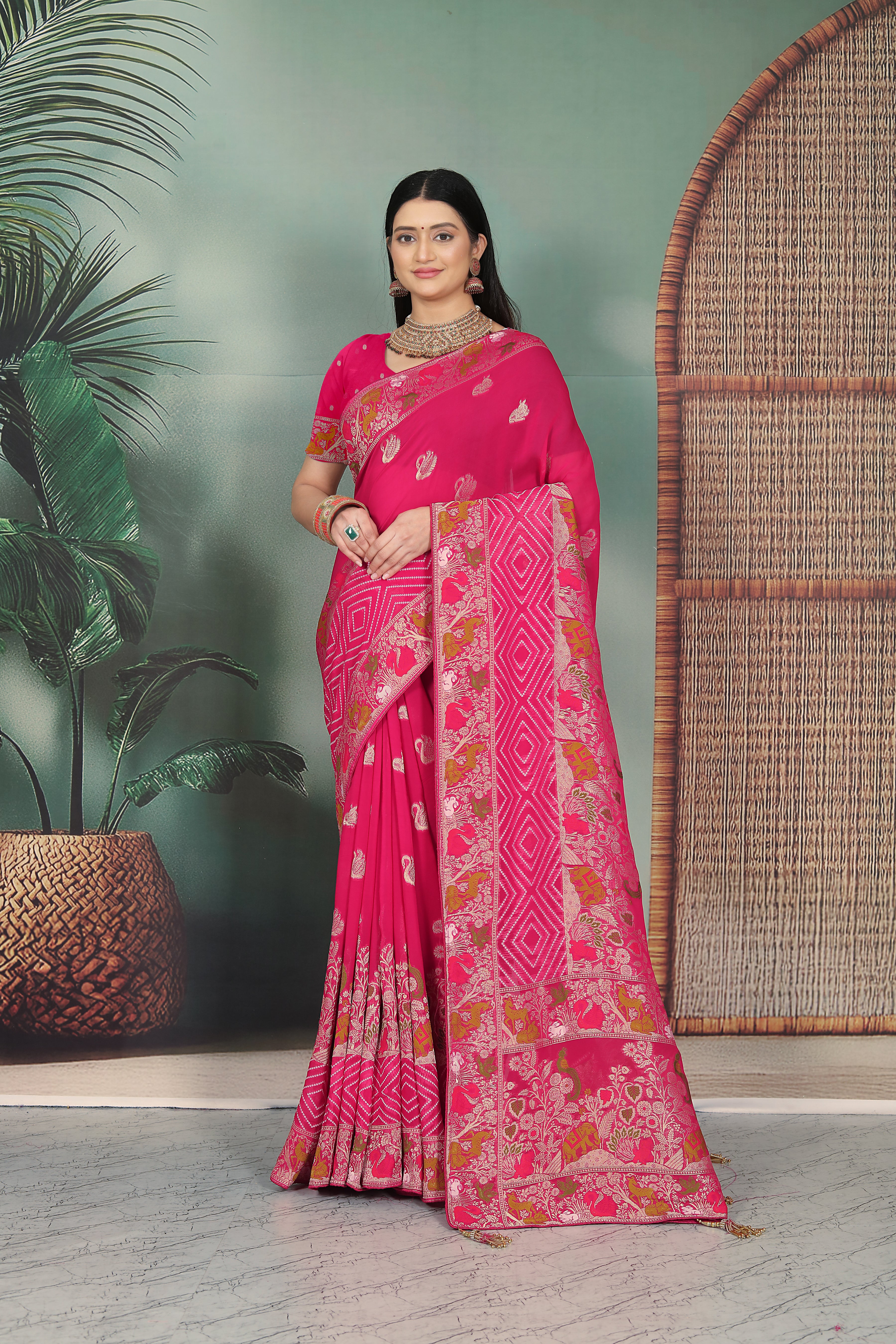 georgette saree pink strawberry