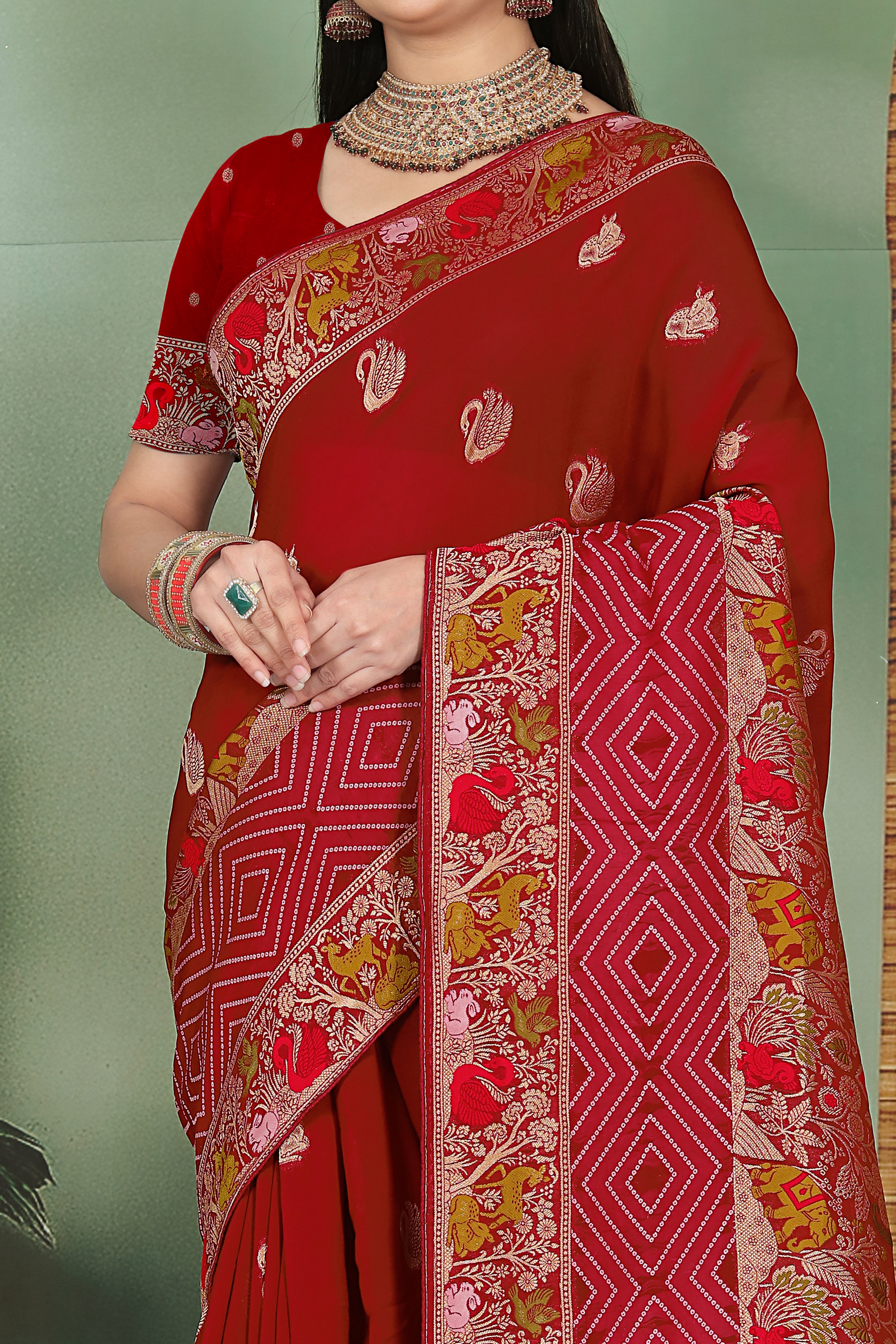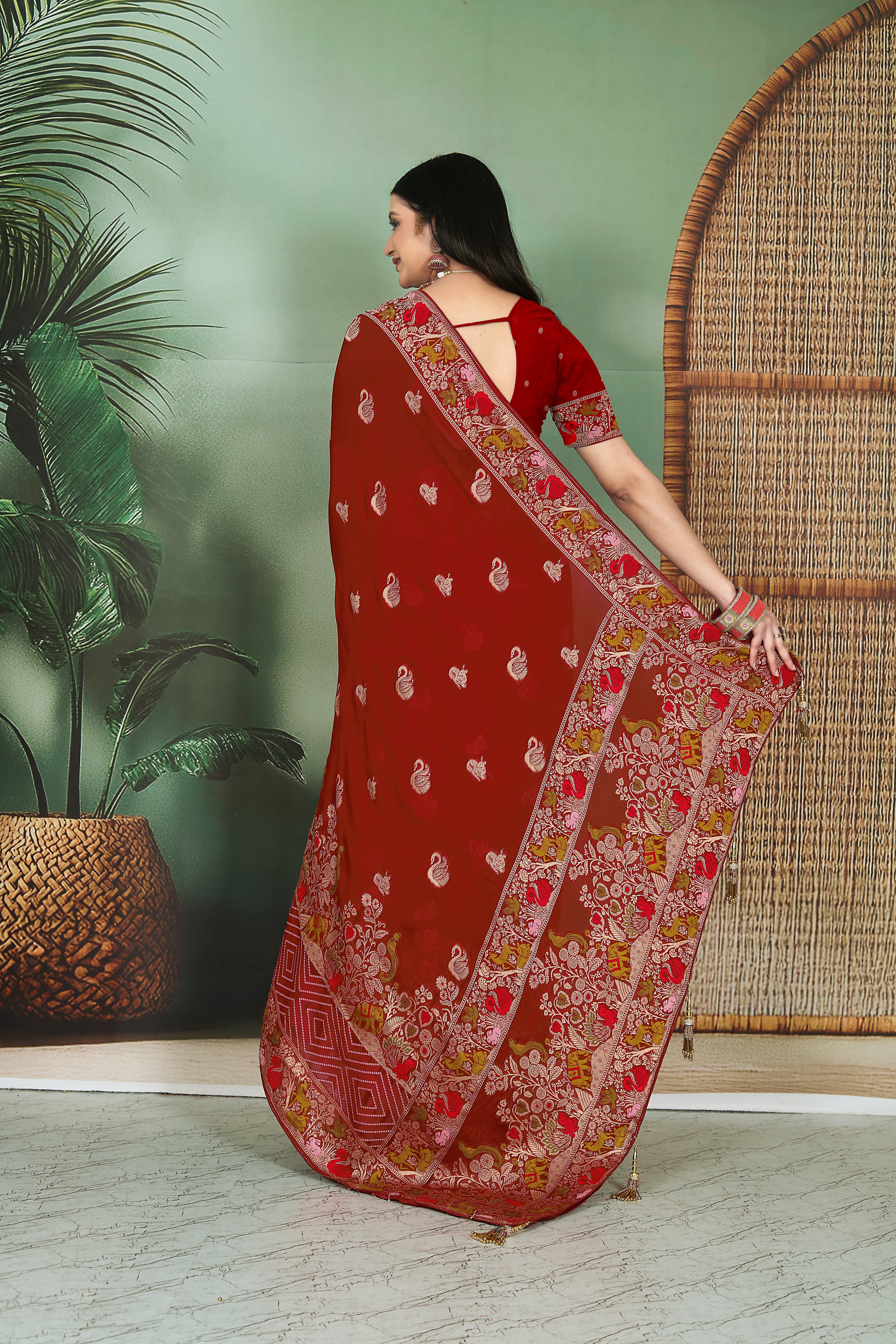 georgette saree maroon