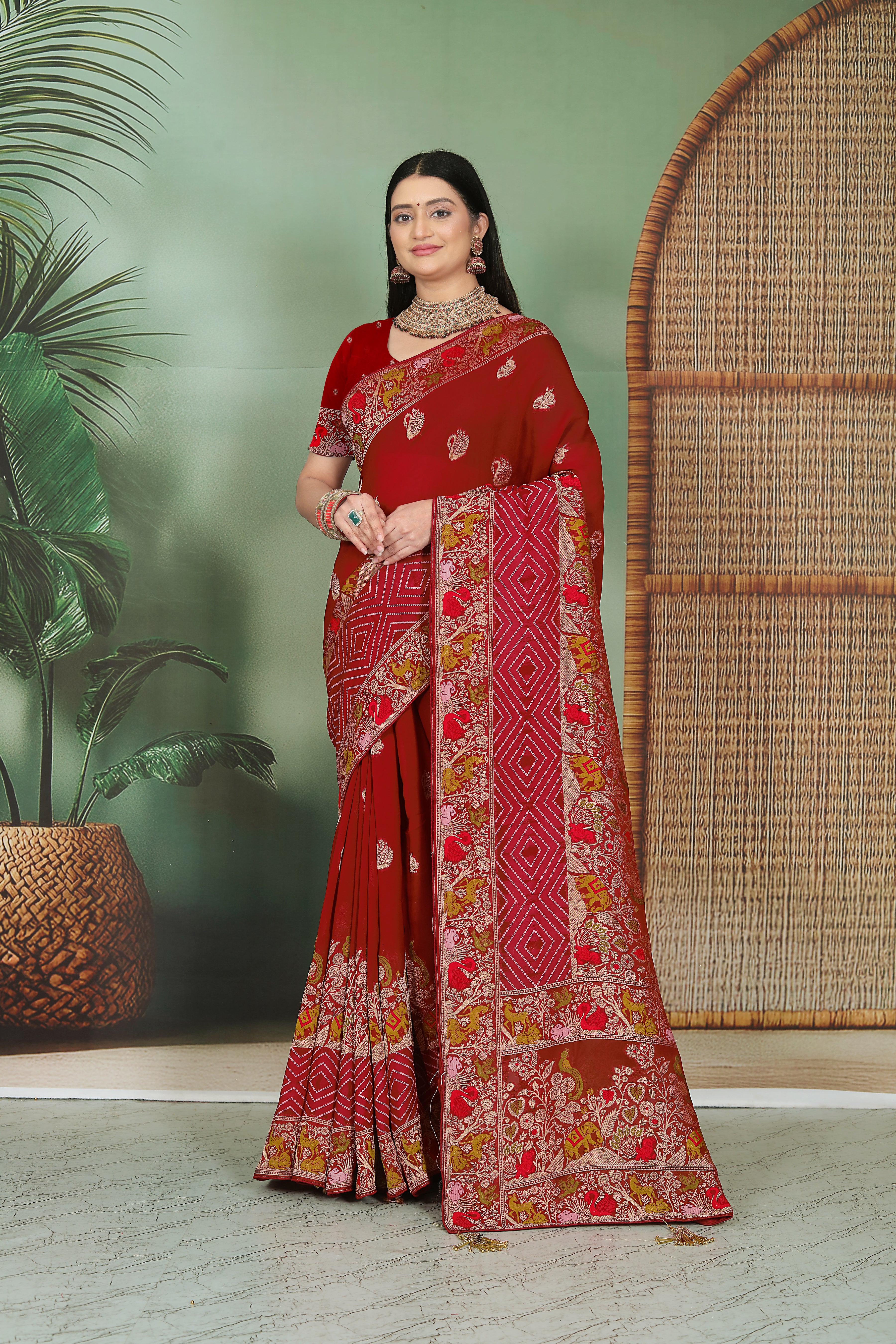 Weaving bandhej with minakari maroon color.